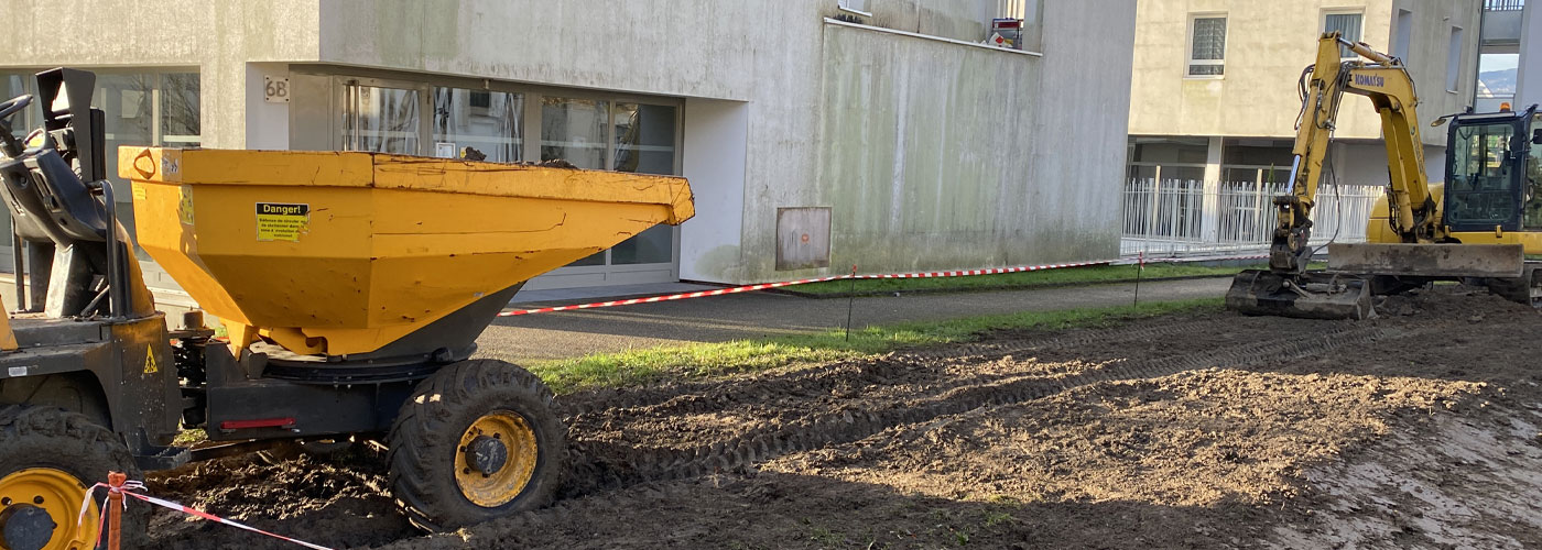 Jusqu'à la fin du mois de janvier (hors intempéries et aléas de chantier), des travaux de plantations et d'infiltration des eaux pluviales sont menés le long de l'avenue du Granier ainsi que des travaux de sécurisation de traversées piétonnes et d'adaptation du rond point de Bavière (pour améliorer la circulation des bus).