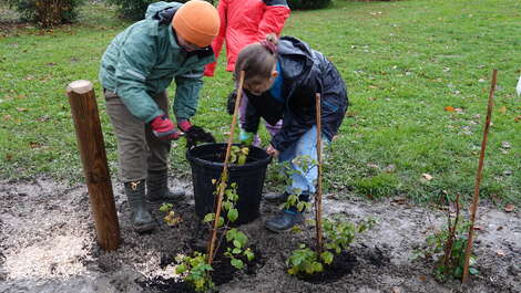 Grâce à son idée, vos votes, et la motivation des habitants et de trois classes de CM1-CM2 des écoles de la Ville, cinq lieux ont été agrémentés de framboisiers, cassissiers, groseilliers et casseillers !