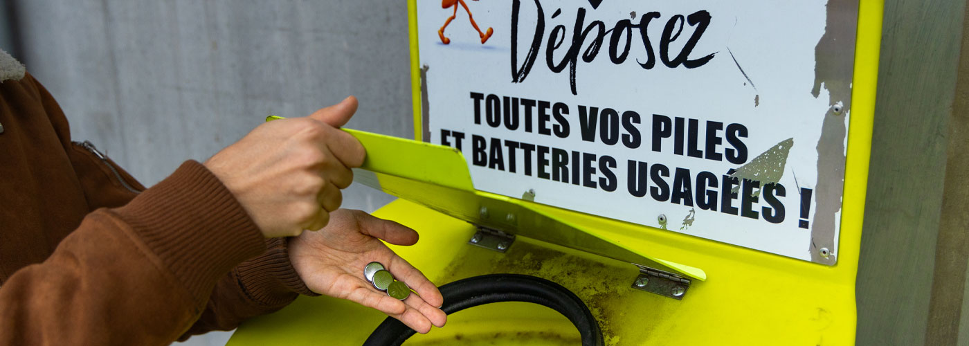 Les objets pouvant contenir des piles ou batteries au lithium : en déchèterie, dans les caisses ou espaces dédiés aux déchets d'équipements électriques et électroniques (D3E). Ils ne doivent en aucun cas être jetés dans une poubelle (ni grise ni verte) ni même dans une grande benne de déchèterie type métaux ou encombrants.