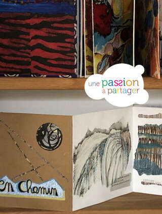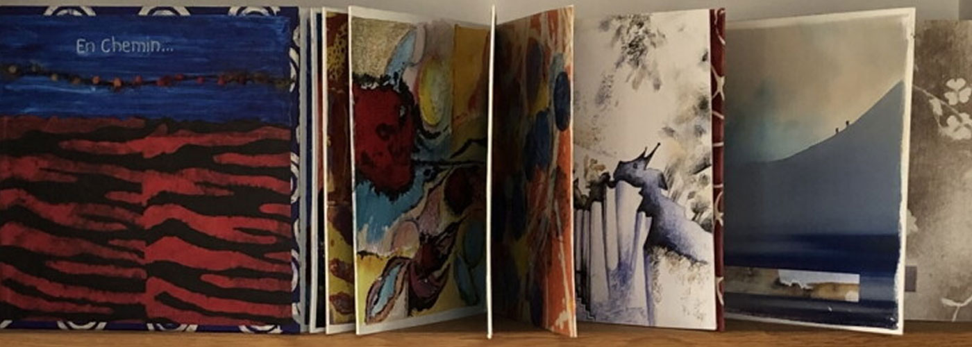 Le thème commun "En chemin" invite à une itinérance. Chaque artiste a initié un ouvrage, le suivant ayant poursuivi dans la technique de son choix. C’est ainsi que vous pourrez découvrir du dessin, de l’aquarelle, de la peinture, du collage, de la gravure, de la photographie, des techniques mixtes…